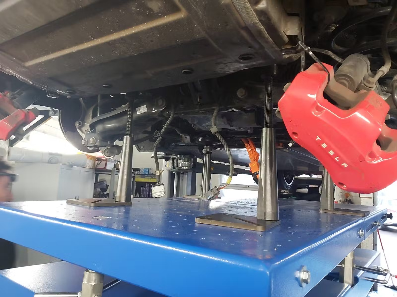 We utilise two post lifts with Tesla-specific adaptors, designed for safe, precise lifting of electric vehicles. This allows us to perform underbody inspections, maintenance, and repairs with the highest level of care and attention.